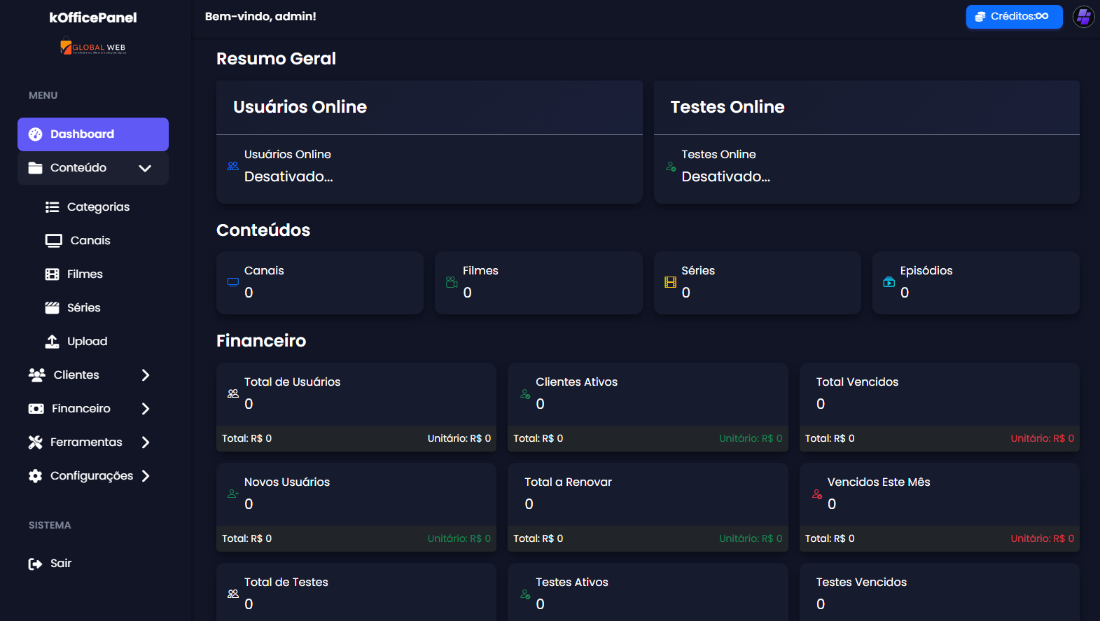 ✅ Controle de receita e créditos