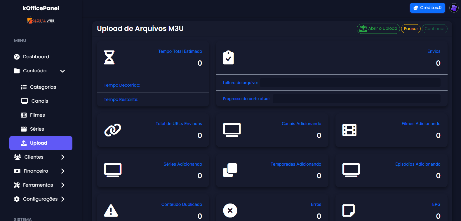 ✅ Upload de arquivos M3U